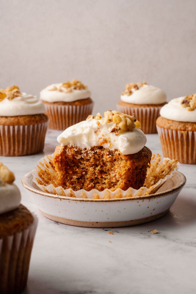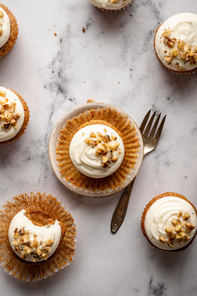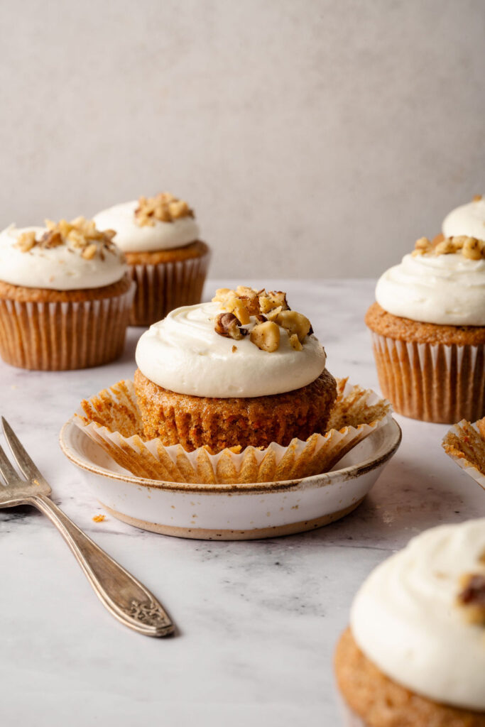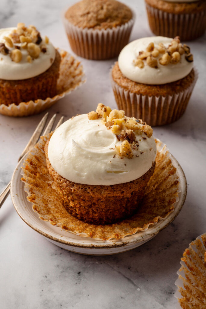 They’re made with freshly grated carrots, warm spices, and a combination of oil and sour cream to keep the texture incredibly tender and fluffy. Once baked, each cupcake is finished with a luscious cream cheese frosting that’s silky, balanced, and just the right amount of tangy.