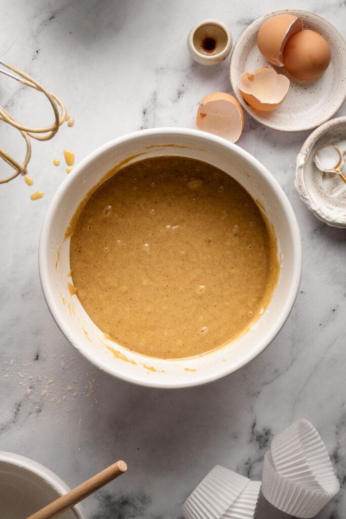 Step 6: Line a standard cupcake tin with paper liners. Divide the batter between the liners, filling each about 3/4 full. Bake at 350°F for 18–22 minutes. A toothpick inserted should come out clean or with a few moist crumbs.