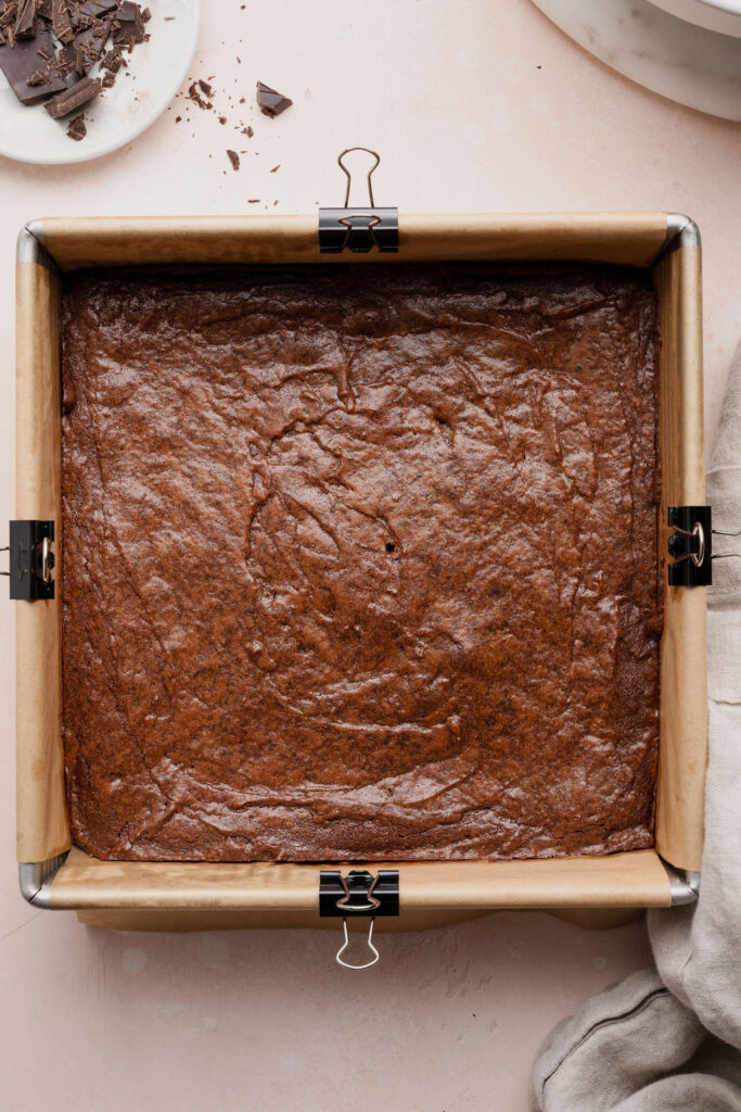 - Allow the brownies to fully cool in the pan before proceeding with the ganache.
