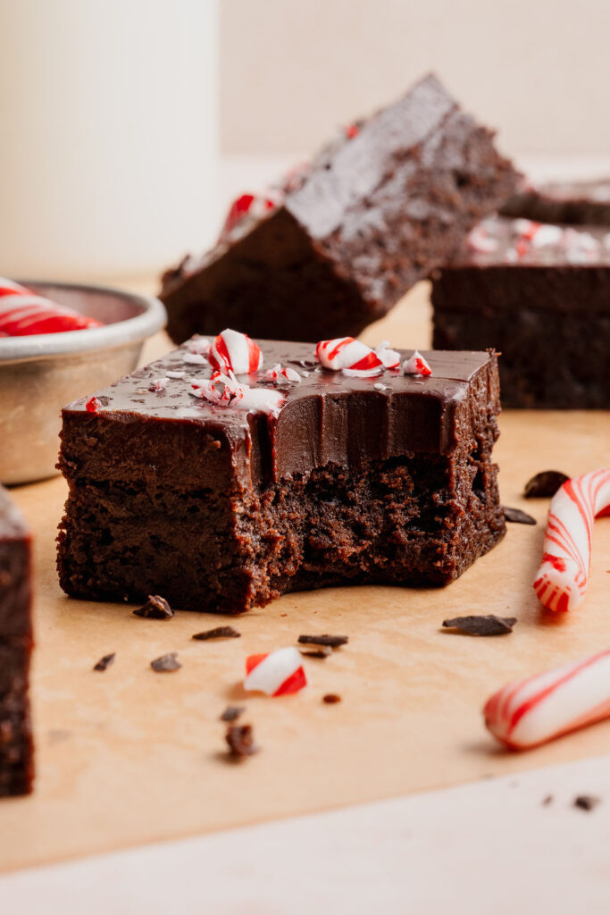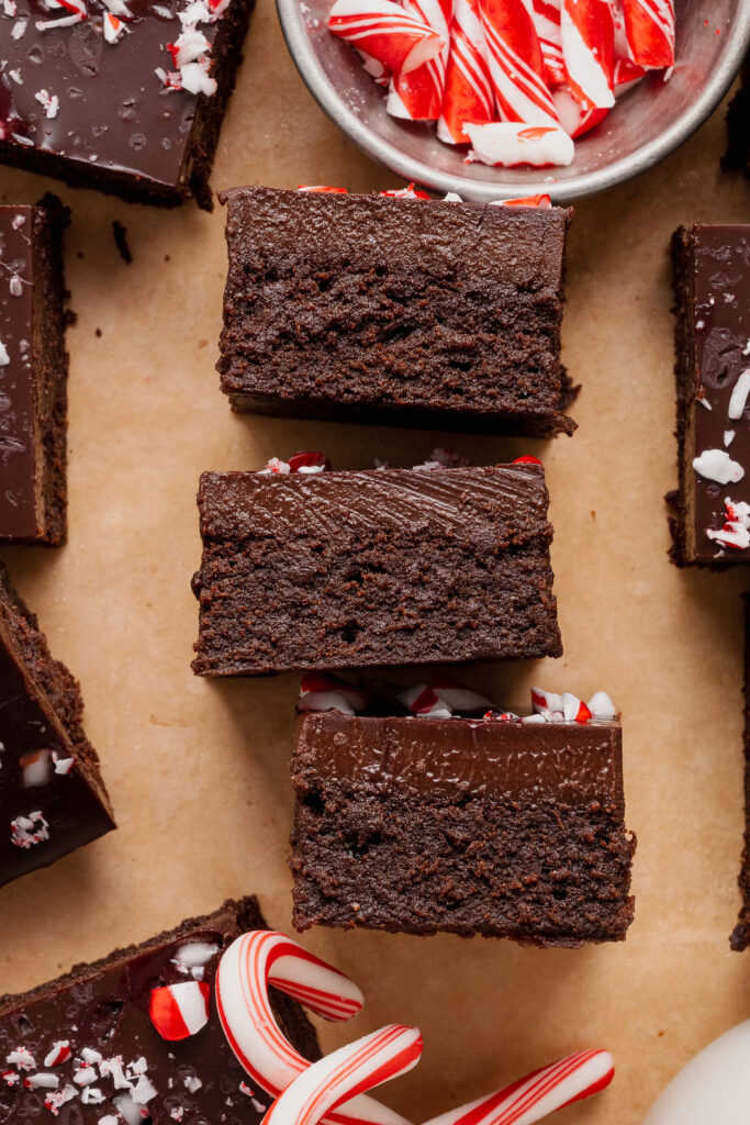 Brownies freeze beautifully. Freeze individual slices (preferably without crushed peppermint on top) tightly wrapped, then placed in a freezer-safe container for up to 2 months. Thaw at room temperature and add fresh crushed peppermint before serving for the prettiest finish.