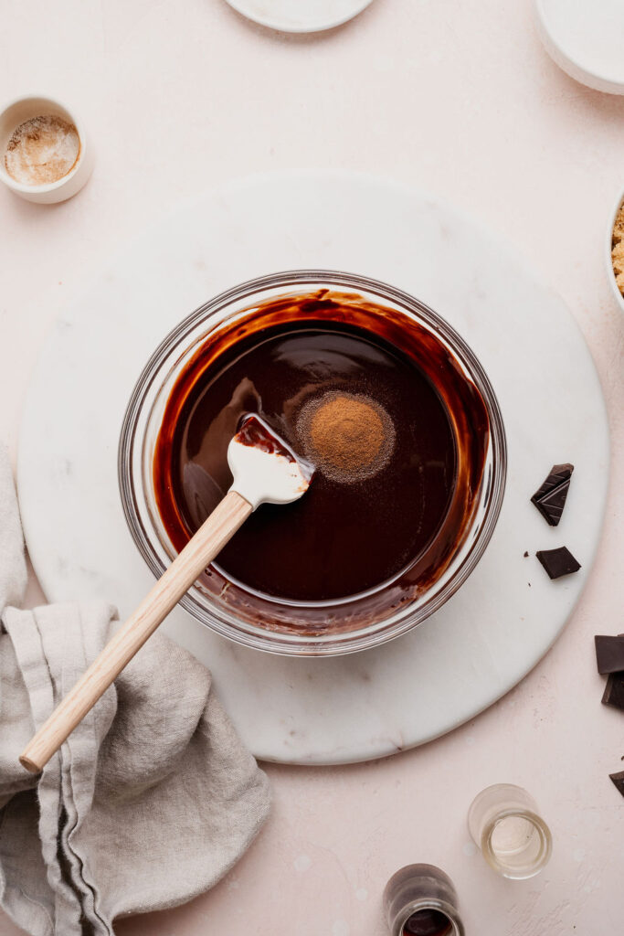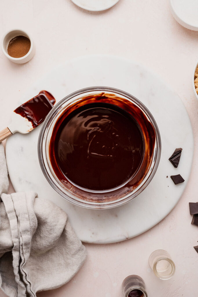 - Melt the butter and chocolate, stirring occasionally until smooth and fully combined.