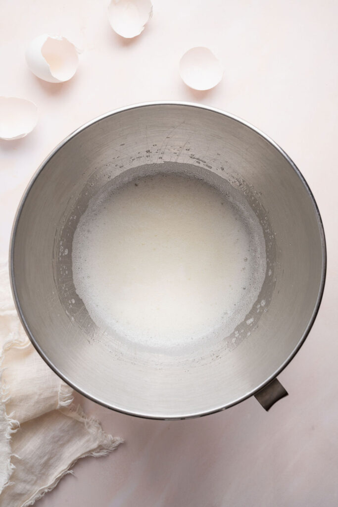2. Whisk the egg whites and salt on medium speed until foamy. This will take 1–2 minutes.
