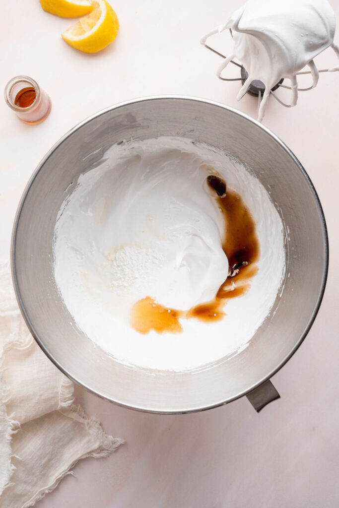 Step 4: Add the cornstarch, lemon juice, and vanilla extract and mix on low speed just until combined.