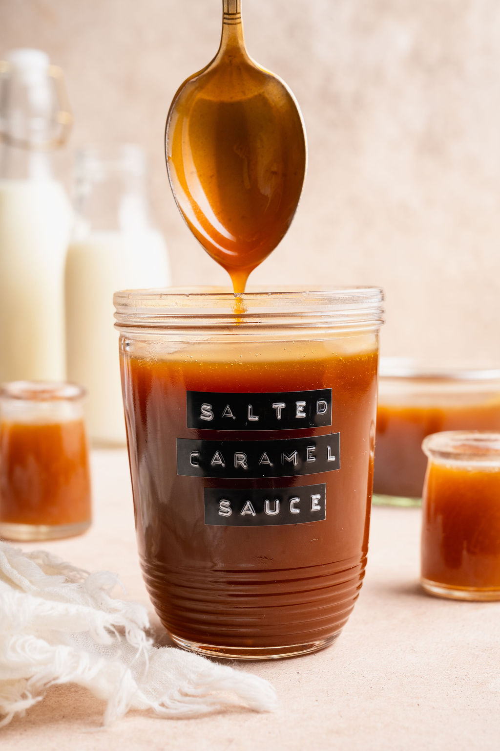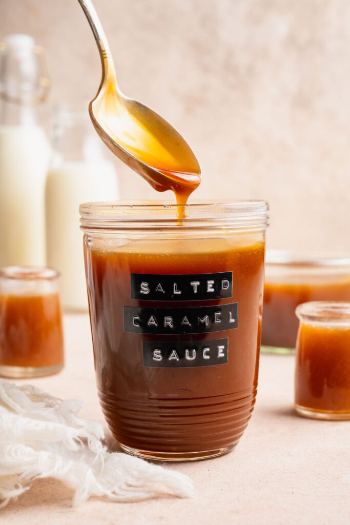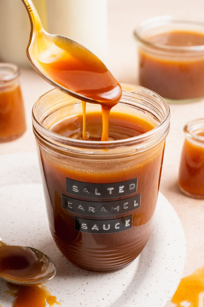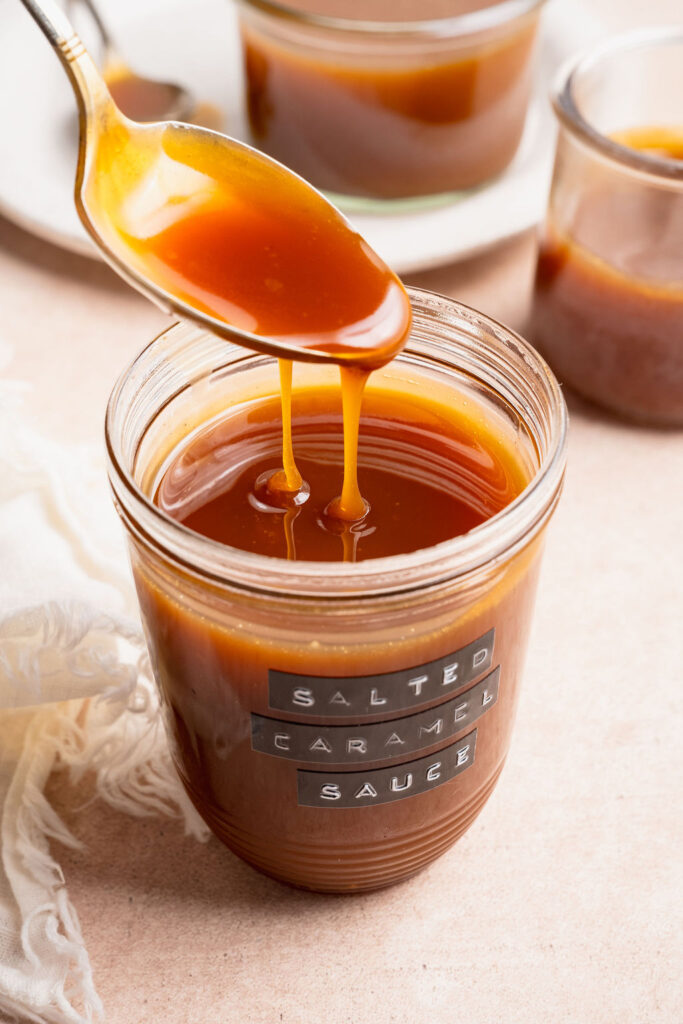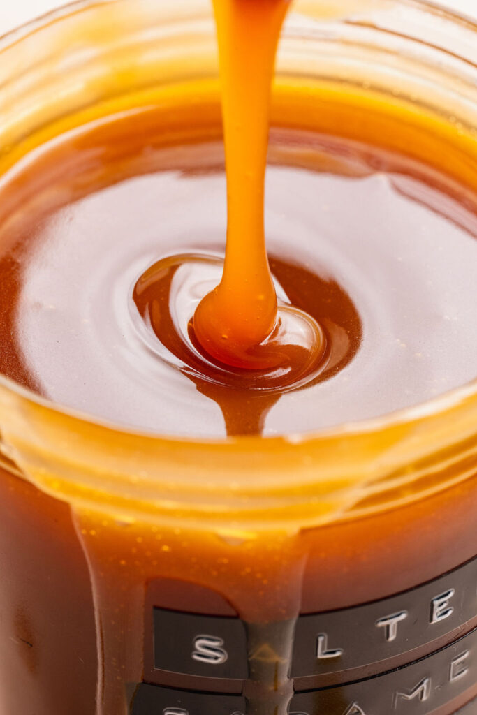 Once the caramel has cooled completely, transfer it to an airtight container or glass jar and refrigerate for up to 2 weeks.