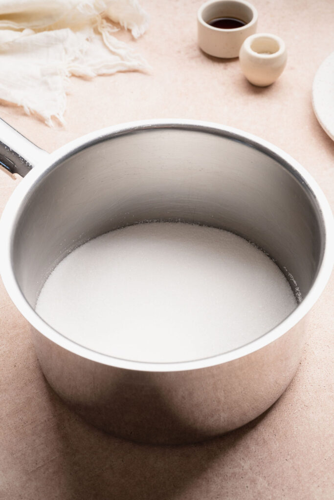 1. Place the granulated sugar in a medium-sized stainless steel saucepan (avoid using a dark-colored or nonstick pan).